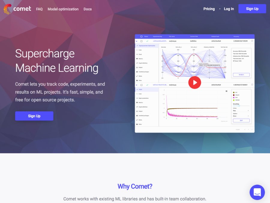 Comet lets you track code, experiments, and results on ML projects. It's fast, simple, and free for open source projects.
